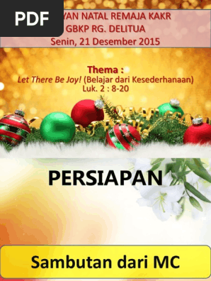 Tata Ibadah from imgv2-2-f.scribdassets.com Naskah pidato sambutan ketua kelas. Akhirnya, kami atas nama panitia mengucapkan selamat natal tanggal 25 desember 2014 dan tahun baru 1 januari 2014. Berikut ini merupakan beberapa contoh sambutan natal Kata sambutan pada perayaan natal smk st nahanson, 17 desember 2019. Contoh kata sambutan ketua panitia seminardeskripsi lengkap. Contoh pidato kata sambutan natal dan tahun baru #2. Kata sambutan panita jemaat dan majelis : Sambutan ketua panitia hut ke 25 gereja bethany blora.
